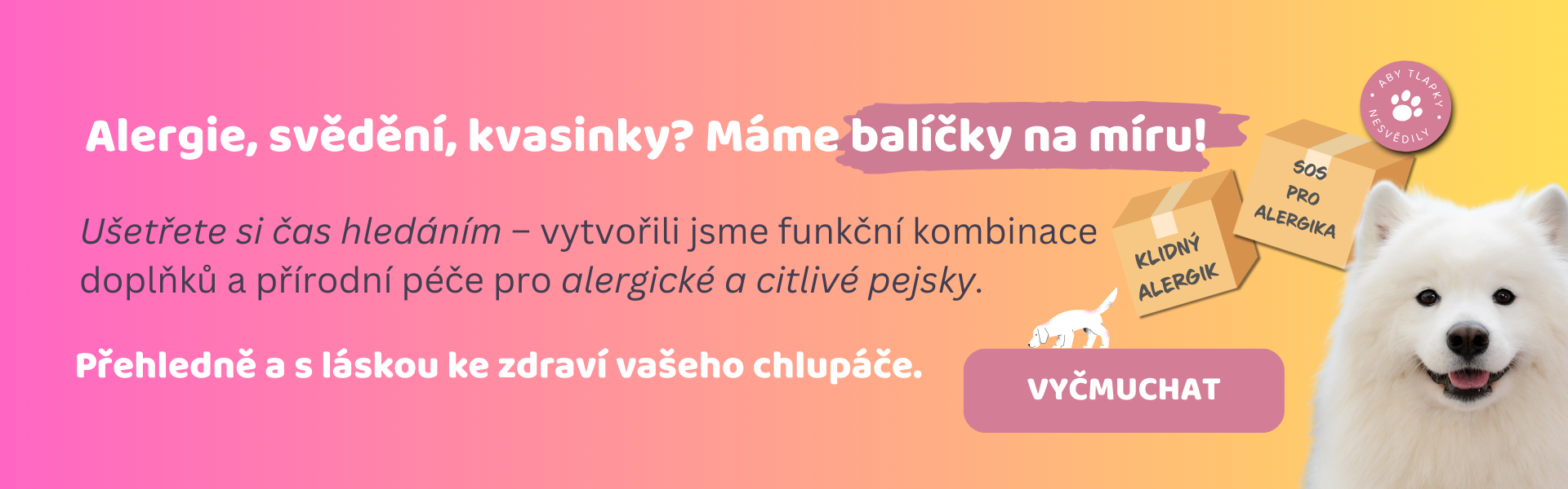 Balíček pro alergické a neklidné pejsky. Pomáhá zmírnit stres z neustálého drbání a vykusování a harmonizovat imunitu při alergických projevech.
