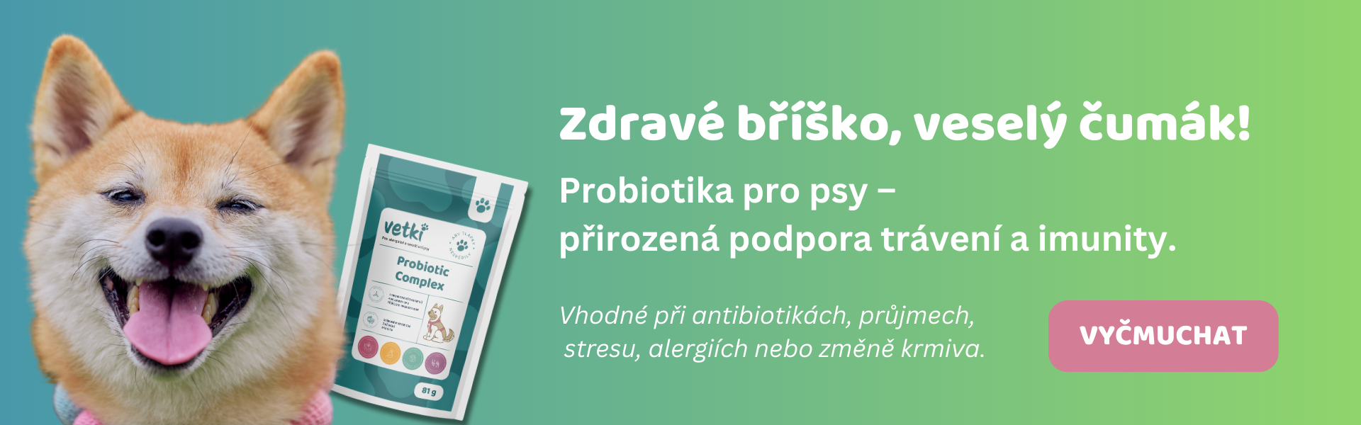 Probiotika pro psy podporují zdravé trávení, rovnováhu střevní mikroflóry a posilují imunitní systém. Jsou vhodná při alergiích, po antibiotikách nebo při zažívacích potížích.