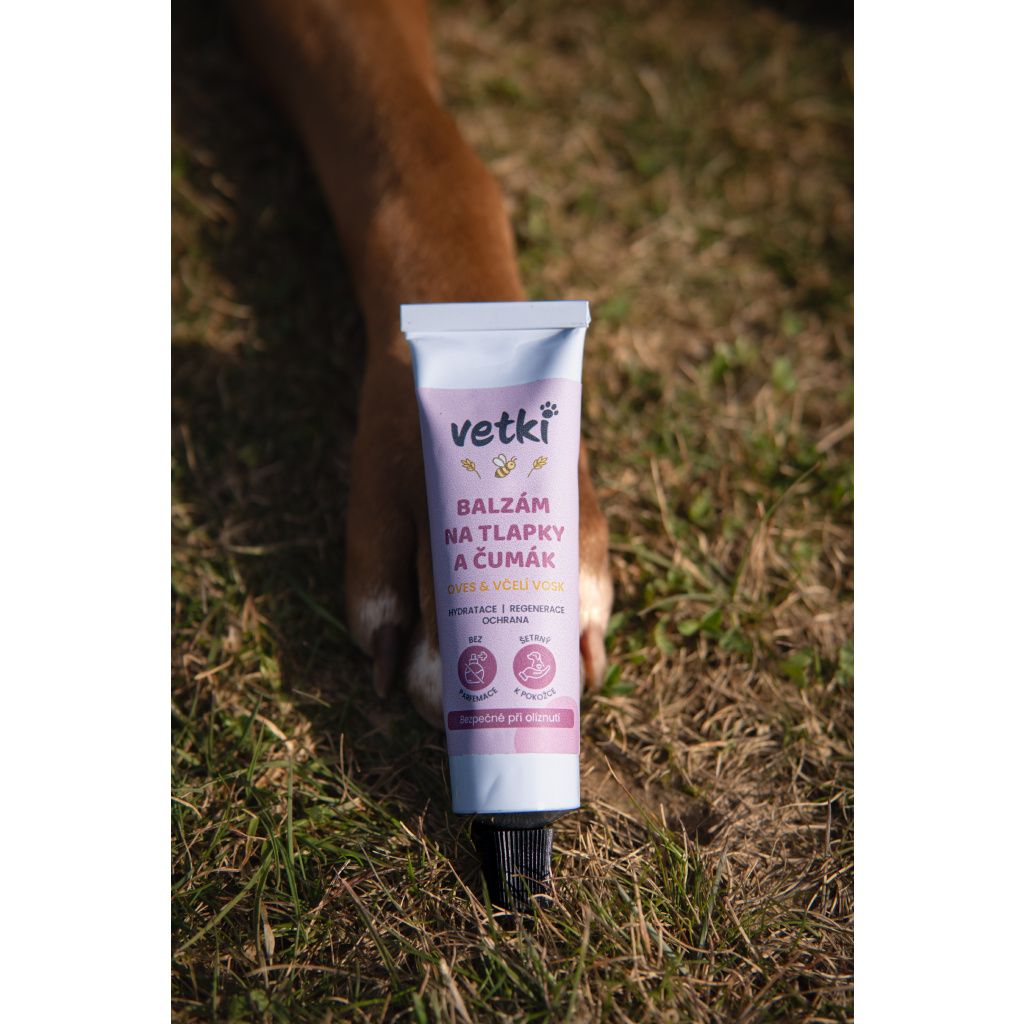 Balzám na tlapky a čumák vetki s koncentrovaným složením a jemnou texturou umožňuje snadné nanášení a díky tomu stačí opravdu malé množství. Praktická tuba navíc zajišťuje hygienické a přesné dávkování bez zanášení nečistot, takže balzám zůstává čistý i při každodenním používání.